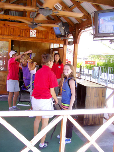 Preparándome en el "Vértigo Xtremo", con mi tía